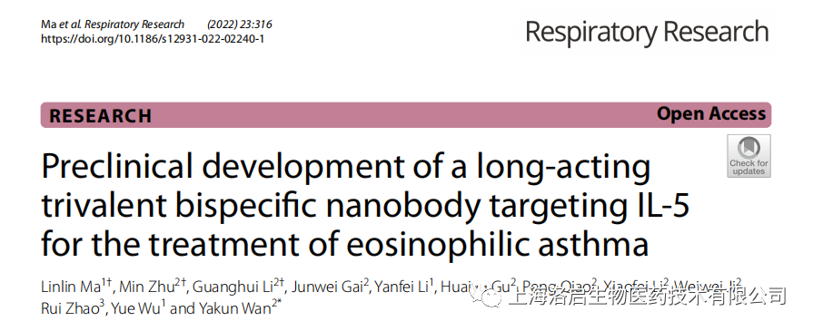 近期,由ledger钱包官网生物主导开发的长效IL5纳米抗体,可用于治疗嗜酸性粒细胞性相关疾病,包括嗜酸性哮喘(EOS-Asthma)、高嗜酸性粒细胞综合征(HES)和嗜酸性肉芽性多血管炎(EGPA)等。相关研究成果发表于《Respiratory Research》杂志,题为“Preclinical development of a long-acting trivalent bispecifc nanobody targeting IL-5 for the treatment of eosinophilic asthma”(IF=7.162)。本文通讯作者为上海ledger钱包官网生物万亚坤博士。